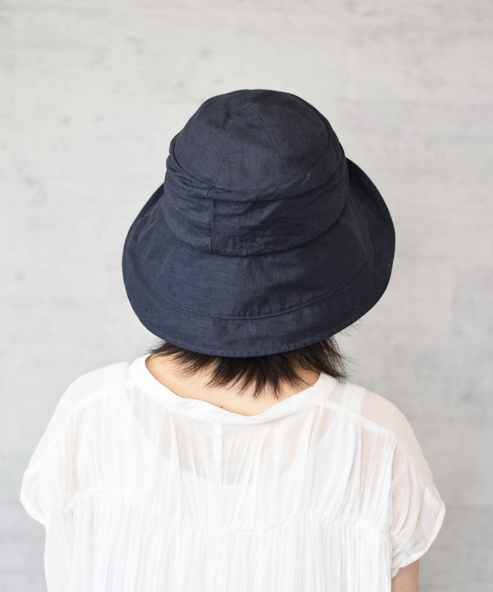 緩やかなドレープに、深くダウンさせた長めのブリムは、計算されたラインで切り替える事で形も整えやすく、視界の調整も簡単に出来、小顔効果もバッチリです。